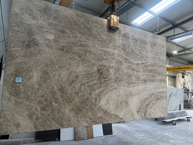 Taj Mahal to wzór kwarcytu naturalnego, który od lat przyciąga osoby szukające harmonii, subtelności i elegancji w wystroju wnętrz. Kolorystyka materiału oparta jest na łagodnych tonach beżu i złamanej bieli, z miękkimi szarościami układającymi się w poziome, delikatne warstwy. Taki układ przypomina naturalne fale lub muśnięcia pędzla i idealnie wpisuje się w jasne, spokojne aranżacje.